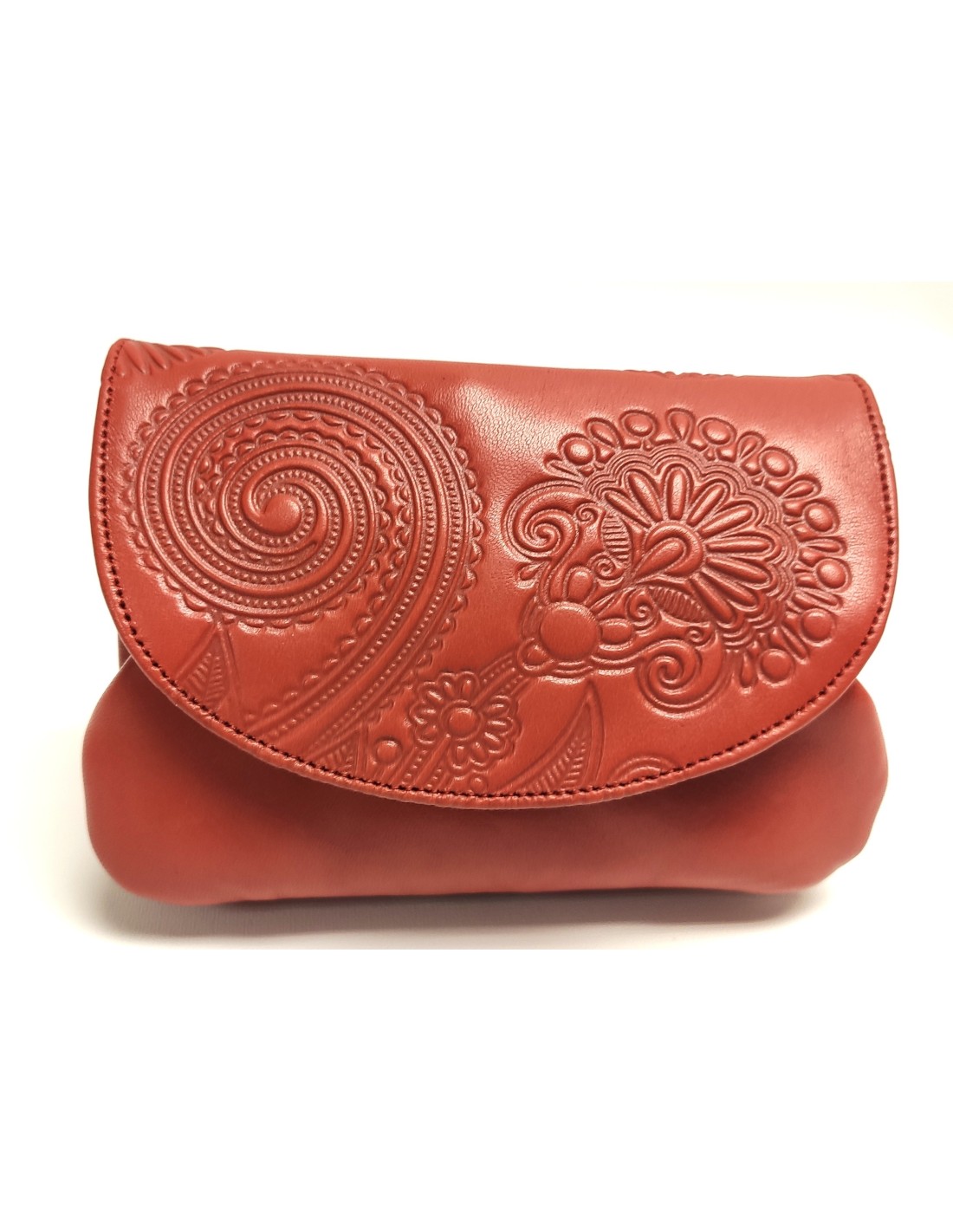 Monedero de piel con boquilla en el interior de la solapa.