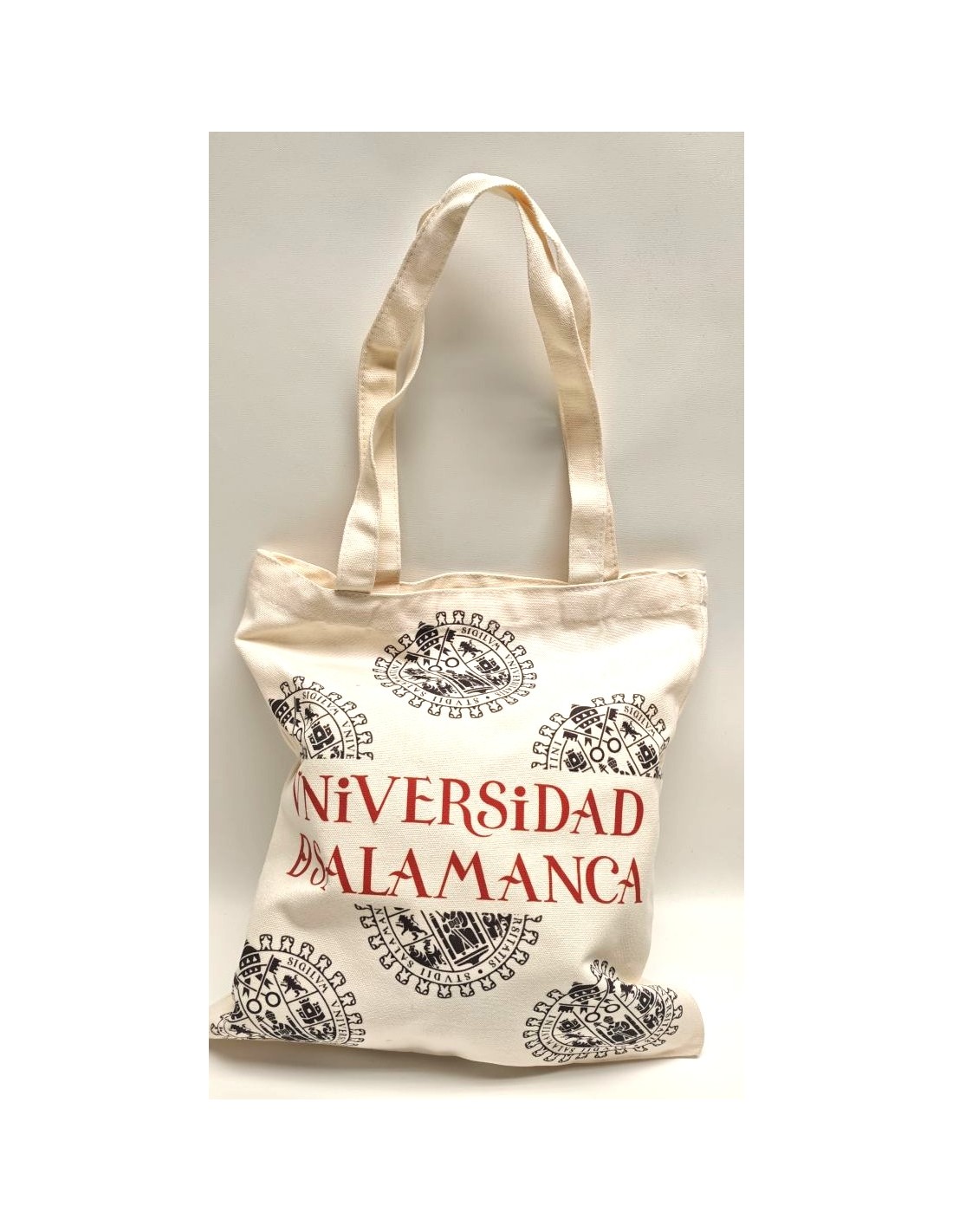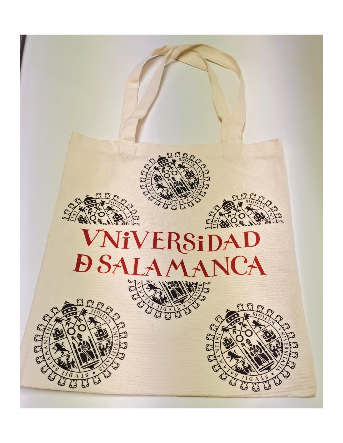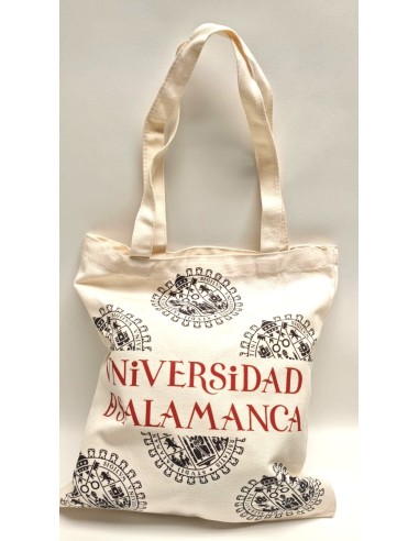 Bolsa con escudo de la Universidad de Salamanca en color beige, dos asas.